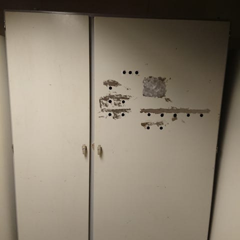 Skåp tillverkat i rostfritt material.