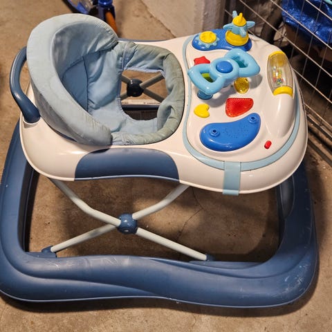 Resesäng, lära-sig-gå stol, och babysitter allt i använt skick, stolen är knapp använd dock. 400kr per artikel.