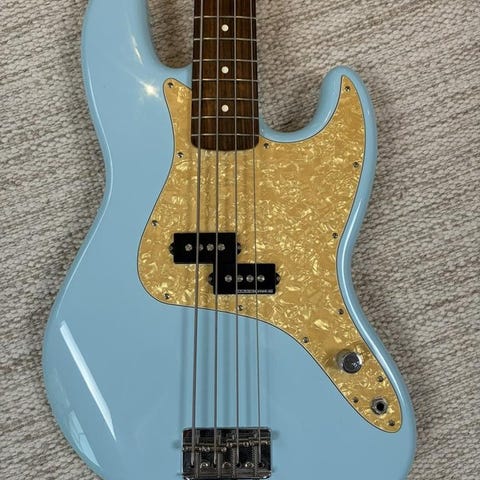 Detta är en Indonesienbyggd Fender Jazz Bass Standard, endast använd på två spelningar så skicket är absolut toppklass.