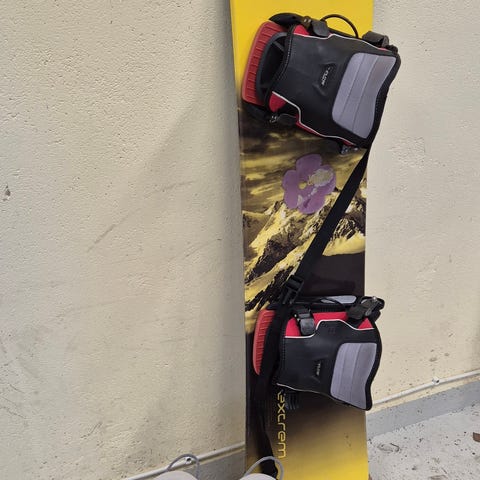 Fin snowboard, 149 cm. Kängor medföljer, liksom snygg axelväska Salomon.