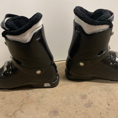 Salomon pjäxor i röd och svart färg. Modellen har flera justerbara spännen framtill och kraftig rem upptill för stabil passform runt fot och underben. Hårt ytterskal i plast ger stöd vid åkning och innersko i textil ger komfort och värme. Passar för alpin skidåkning i pist för ungdom/vuxen. I fint skick och fungerar perfekt.
