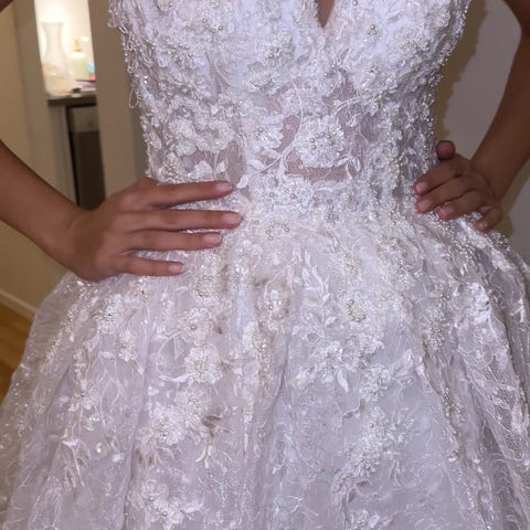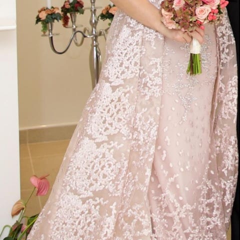 KEMTVÄTTAD. Drömmig rosa långklänning med flera lager volanger och vackra spetsdetaljer. Klänningen har offshoulder-band och ett blommigt mönster över hela tyget. Perfekt för bal eller student😍😍 köpt på dress room i Göteborg för 5500 kr. Är i storlek 6/xs men jag som brukar ha s passade den lika bra