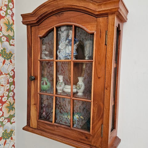 Väggskåp med frostat vita glasdörrar och vanliga glashyllor. Utan fel, i bra skick!