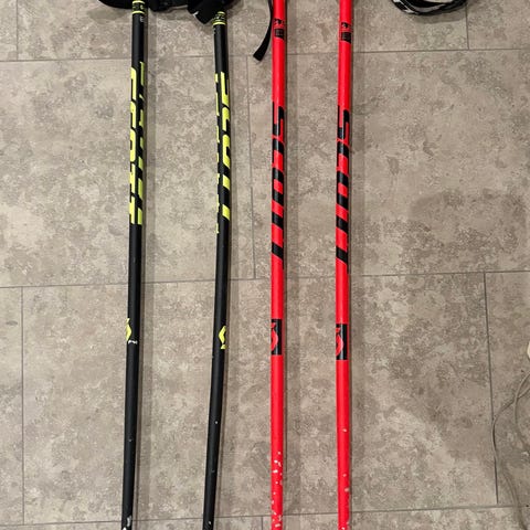 Scott skidstavar 95 cm i svart färg. Utrustade med handremmar och trugor samt spetsar anpassade för skidåkning. Passar för alpin skidåkning.