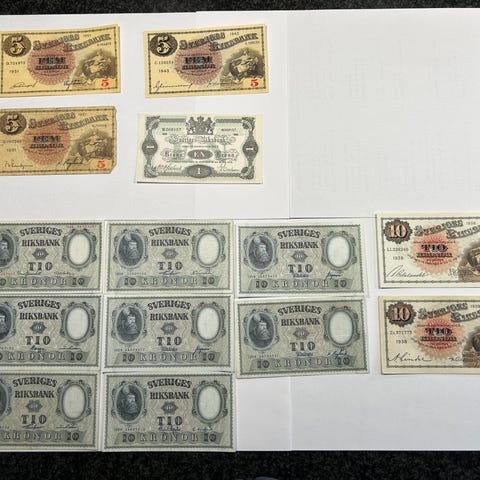 Lösparti med 10 vintage £1-sedlar från 1950-talets Bank of England – Blandade serienummer – Samlarvärde Ta ett steg tillbaka till mitten av 1900-talets Storbritannien med detta charmiga lösparti på 10 original £1-sedlar från Bank of England, alla från 1950-talet. Dessa ikoniska gröna sedlar har den klassiska Britannia‑designen och löftet att betala innehavaren på begäran – ett verkligt stycke brittisk pengahistoria. Vad som ingår • 10 äkta £1-banknoter från 1950-talet • En variation av serienummer, idealiskt för samlare som gillar att leta efter mönster eller sällsyntheter • Sedlar i cirkulerat vintage-skick, med de förväntade tecknen på ålder och hantering som bidrar till deras autenticitet och karaktär Varför samla på dessa sedlar • Perfekt för sedelsamlare, historieentusiaster eller alla som bygger en samling av vintagevalutor • Utmärkt för vidareförsäljning, display eller som gåva • Allt svårare att hitta i grupper med blandade serienummer
