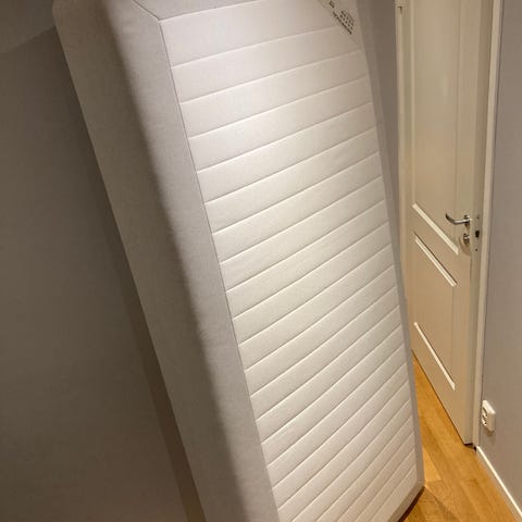 Bäddmadrass Tustna, även den är i bra skick. Inga fläckar på varken sängen eller bäddmadrassen. Har alltid haft ett madrasskydd över.