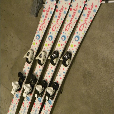”Bra skick - synligt använd” är egentligen en bättre beskrivning. Sjysst, stabil och absolut fullt funktionell barnskida. Lite grunda repor syns i belaget men inget som påverkar direkt negativt. Nyligen glidvallade. Bara ut och köra!