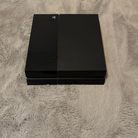 Sony Playstation 4 spelkonsol i svart färg med tillhörande trådlös handkontroll. Konsolen är avsedd för spel, film och streaming och ansluts till TV eller skärm via HDMI. Handkontrollen kopplas trådlöst till konsolen och kan laddas via USB-kabel. Passar för användning i hemmet för både enskilt och flerspelarläge, beroende på antal kontroller och spel som används.