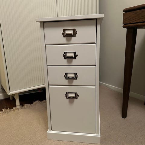 Flera lådor + stor nederlåda (för mappar/förvaring)