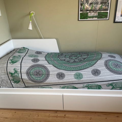 Köpt hösten 2021 och är använd som gästsäng. Sovits i max 5 nätter totalt. Madrasser ingår.