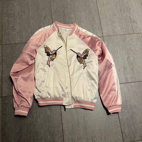 H&M jacka för barn i storlek 134 för flicka. Jackan är flerfärgad med mönster och är tillverkad i polyester. Passar som lätt ytterplagg vid mildare väder. Resår vid ärmslut, nederkant och krage för bättre passform. Dragkedja framtill och slätt innerfoder i polyester.