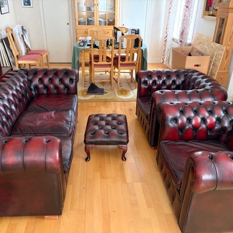 Exklusiv Soffgrupp Stalands "Hartland" – 2 Soffor + Pall (Chesterfield)
