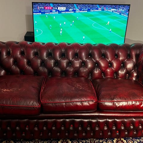 Stilen är en modern Chesterfield med djuphäftade knappar och exklusiva detaljer som dekorationsspik i mässing ("Brass Nails").