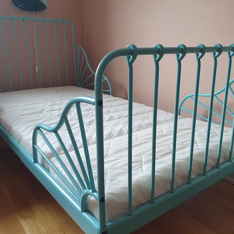 Säljer nu vår växa-säng inköpt på Mio (nypris med tillhörande madrass 3000 kr). Sängen är praktisk och lätt att förlänga när barnet växer. Vi skickar med tillhörande madrass med förlängningsdel. Båda dessa har överdrag som är tvättbara och allting är tvättat och i fint skick. Vid önskemål finns även skydd till madrassen och täcke att få med. Hos oss är det rökfritt men katt finns i hemmet.