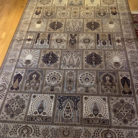 Fyrkantig matta i fin blå och beige färg och skön att gå på.