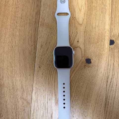 Apple Watch smartklocka i aluminium med lila sportarmband i silikon.