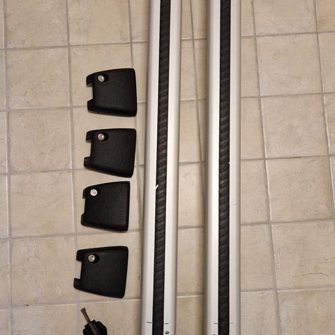 Volvo lasthållare original för integrerade rails till Volvo XC60, inklusive moment nyckel och låsbara lock. Har suttit på årsmodell 2014.