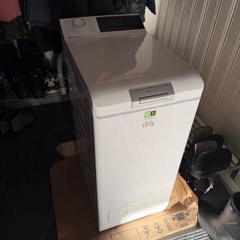 Whirlpool toppmatad tvättmaskin, 6th Sense. Upp till 6 kg tvätt, centrifug 0-1200 varv. Panel med flera programval för bland annat bomull, syntet, fintvätt, ylle och snabbprogram, samt inställningar för temperatur och centrifugering. Tvättmedels- och sköljmedelsfack sitter i locket.