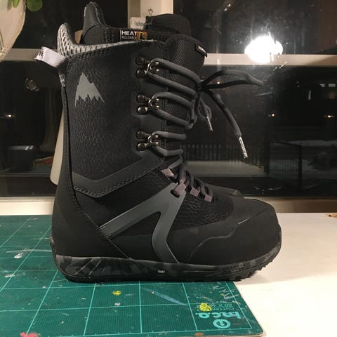 Dessa boots har snörning och en robust sula. De är designade för att ge stöd och komfort under åkning.