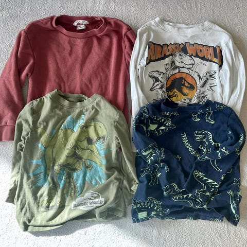 SĂ€ljer ett fint barnset med dinosauriemotiv.