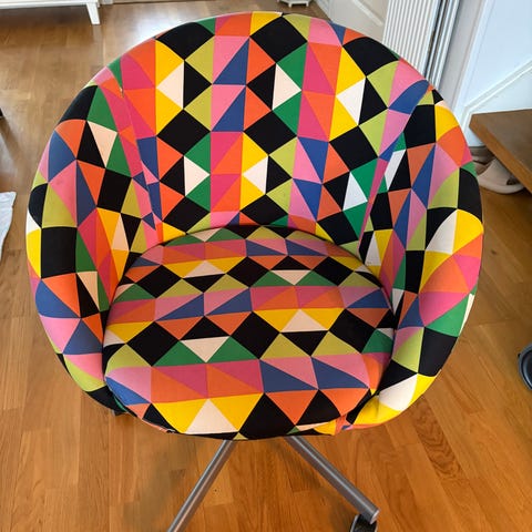 IKEA SKRUVSTA snurrstol med färgglatt mönster