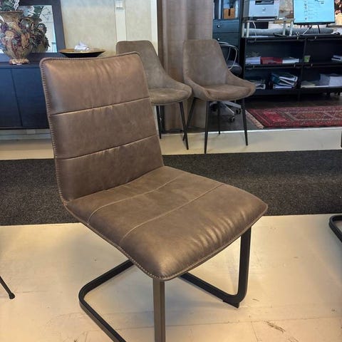 Tygklädd stol med svarta stålben med fjädrande underede som ger behagligt svikt.