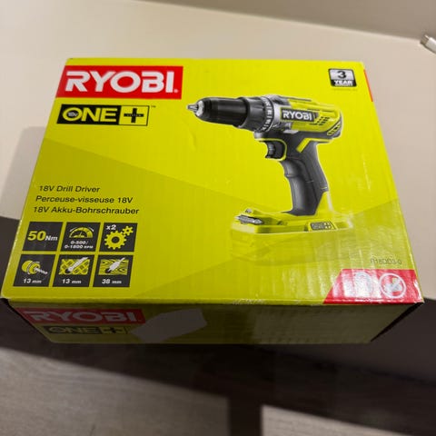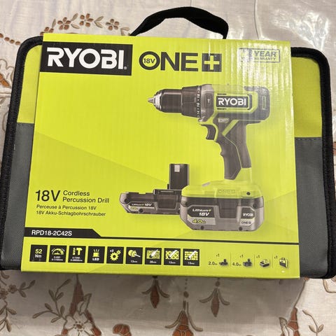 Ryobi bormaskin plus batteri och laddare samt en väska
