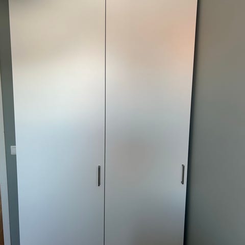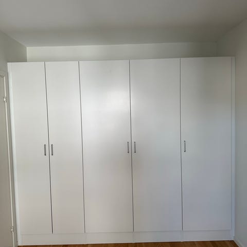 IKEA PLATSA garderob i vit färg och gråa dörrar. Består av 3 stommar. Mått: