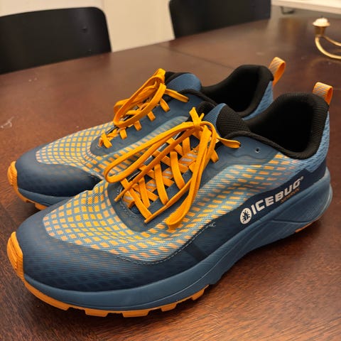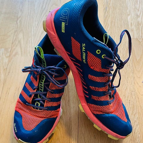 VJ Sport löparskor för övriga sporter i storlek 43. Skorna är svarta med orange detaljer, inklusive orange snören och sula. Ovandelen är i meshmaterial som ger ventilation. Yttersulan har kraftigt mönster och metalldubbar för grepp på hala underlag. Passar för löpning och annan träning utomhus där extra fäste behövs. Märket på skorna är Sarva . Storlek 42.5-43. Nya oanvända.