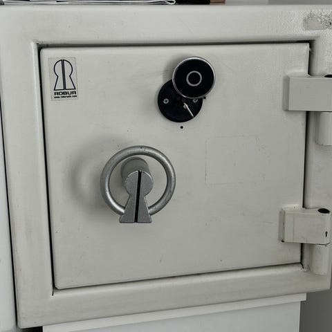 Invändigt finns hyllplan för förvaring av dokument, värdesaker eller utrustning. Passar för användning i hem, kontor eller mindre verksamheter där man vill samla och skydda viktiga handlingar och föremål.
