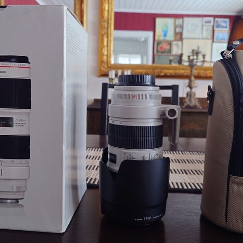 Säljer Canon EF 70–300mm f/4–5.6L IS USM i mycket bra skick. En professionell telezoom i L-serien med bildstabilisering och snabb autofokus. Perfekt för natur, sport och djurfoto.