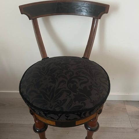 Stol trä brun med dekorerad sits