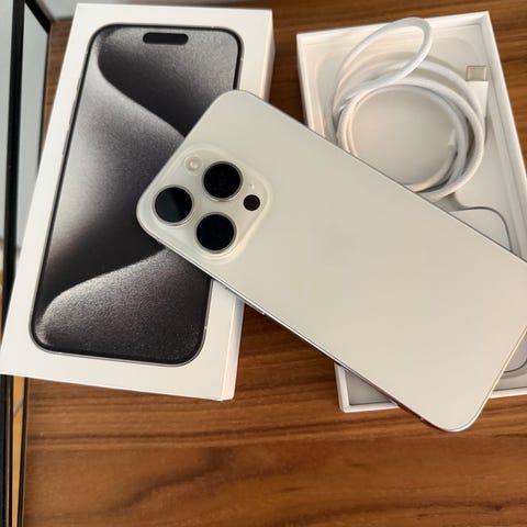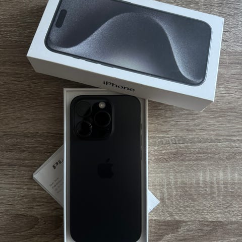 Apple iPhone 15 Pro Max mobiltelefon med 128 GB intern lagring.