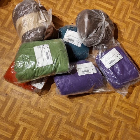 En kasse tvättad fårull. Ca. 1,5 kg. Själv har jag använt det till pyssel och dekorationer samt odlingar.