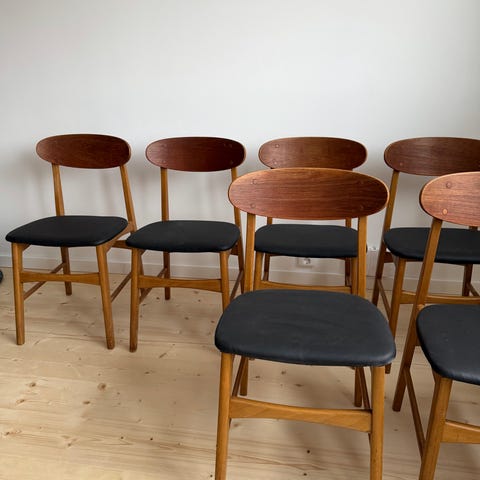 Set om 6 st eleganta Farstrup stolar i teak, Danmark. 50-tal / 60-tal