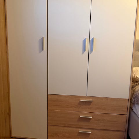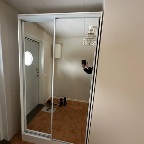 Skåpet är i bra skick med spegeldörr och 3 rullade hyllor