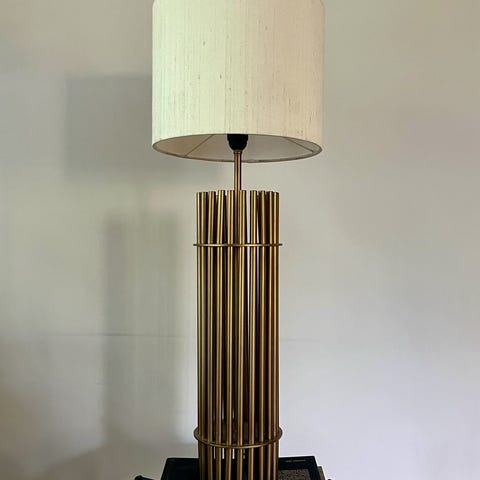 En mässingsbordslampa med en solid dekorativ bas och klassisk design.