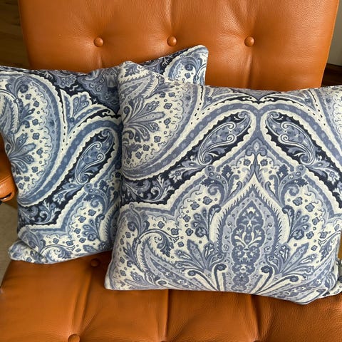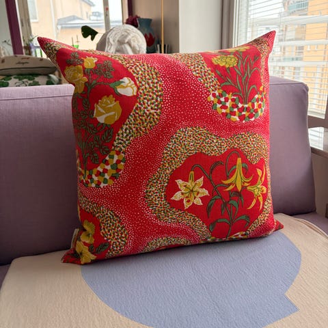 Kuddfodral från Design House Stockholm i mönstret ”Pottery”, formgivet av Stig Lindberg.