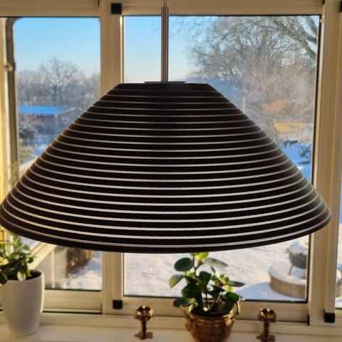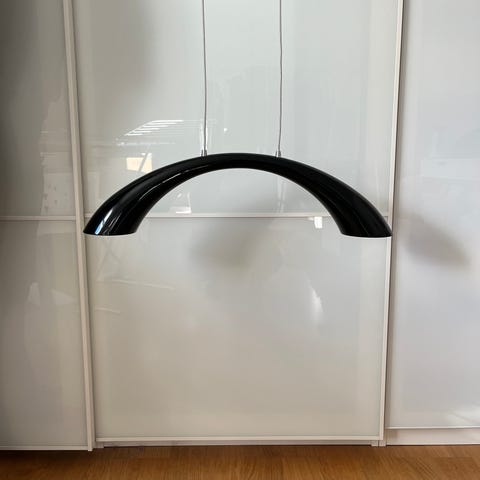 Stor taklampa från Muuto säljes. Designad av duon Iskos-Berlin. Svart utsida, vit på insidan. 82 cm i diameter. Nypris ca 5400 kr