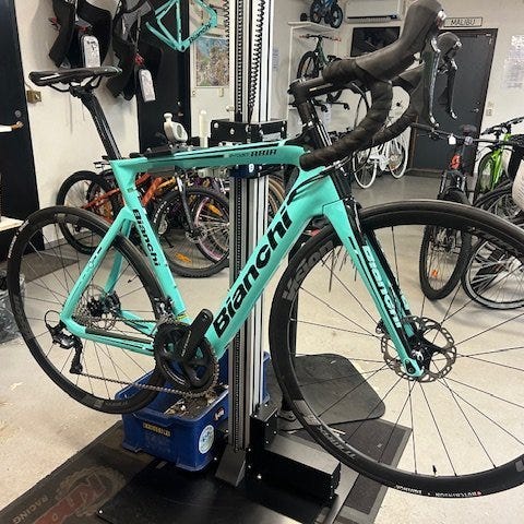 Bianchi intenso med ultegra-växlar.