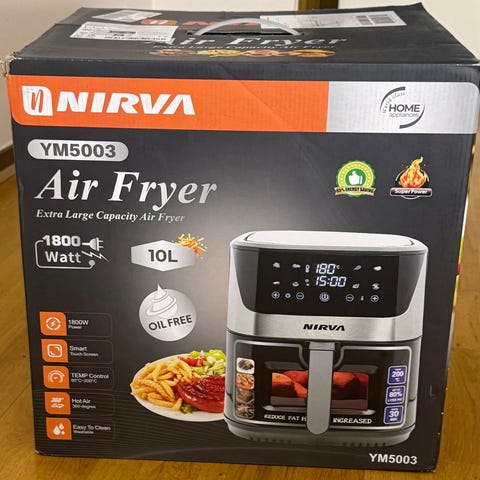 Ninja Dual Zone airfryer med två separata fack för tillagning. Utrustad med digital display, vred för program- och temperaturval samt separata reglage för varje korg. Flera förinställda tillagningslägen och möjlighet att synka eller matcha tid och temperatur mellan zonerna. Svart utförande med detaljer i metall. Passar för tillagning av exempelvis pommes frites, kyckling, grönsaker och andra rätter med varmluftsteknik.