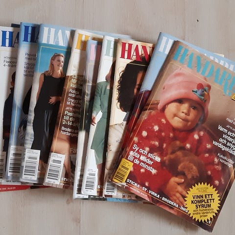 Sticka Lätt sticktidningar mönsterhäften samling. Innehåller flera nummer med stickmönster för olika plagg och accessoarer. Häftena visar modeller för både vuxna och barn i olika stilar och garnkvaliteter. Varje tidning innehåller beskrivningar, bilder och mönsterdiagram anpassade för hemmastickning. Passar för den som vill ha tryckta mönster att följa vid stickning av tröjor, koftor och andra plagg.