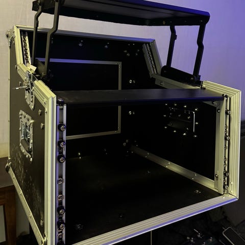 Flightcase i svart med aluminiumprofiler. Väskan är avlång med förstärkta hörn och metallhandtag. Invändigt finns uppdelade fack som lämpar sig för transport och förvaring av tex 2st CDJS + mixer. Lock med avtagbar frontpanel och spännen för säker stängning.