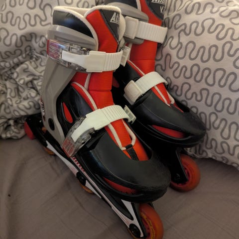 Inlines för barn i storlek 29 - 32 i svart och rosa färg. Setet inkluderar inlines samt matchande skyddsutrustning för knän, armbågar och handleder. Lämpliga för rullskridskoåkning och inlinesåkning på jämna underlag. Passar barn med skostorlek runt 30 som vill åka inlines utomhus, till lek eller träning av balans och koordination.