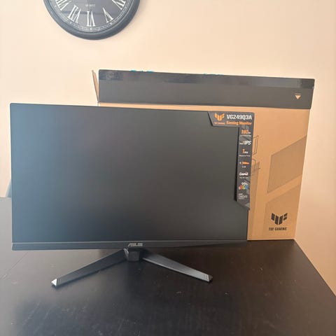 Skärmen är i mycket fint skick, inga repor på panelen eller döda pixlar. Originalkartong finns kvar, vilket underlättar säker transport. Kvitto medföljer (garanti kvarstår).