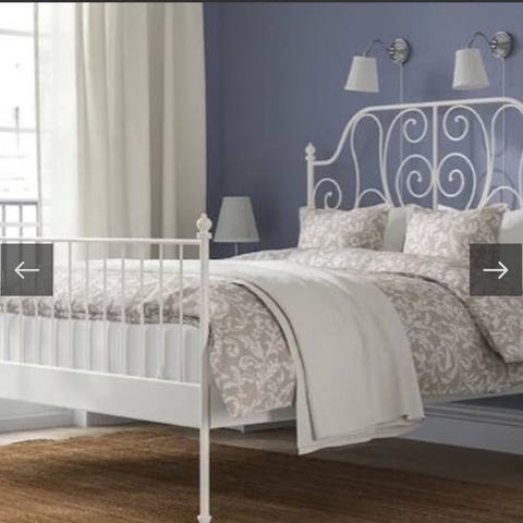 Fin vit sängram i stål för 160 säng. Lätt att montera. En mindre skada, som kan åtgärdas, därav priset. Se sista bilden, det märks inte.