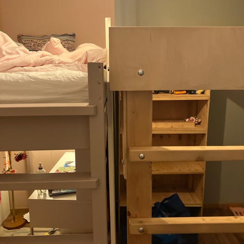 Platsbyggd loftsäng för barn främst ca 1 år gammal sparsamt använd. Madrass finns ej.
