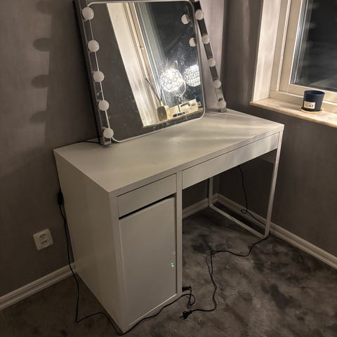 Praktiskt vitt Skrivbord eller sminkbord.