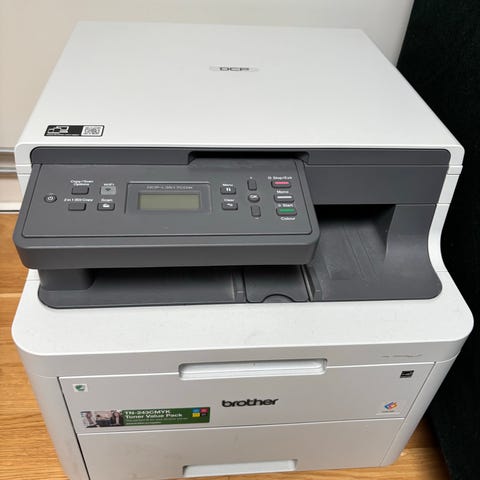 Brother DCP‑L3550CDW multifunktionsskrivare med färglaserteknik. Enheten kombinerar skrivare, kopiator och skanner i samma maskin. Utrustad med kontrollpanel med display och numeriskt tangentbord på ovansidan. Skrivaren är avsedd för A4‑format och passar för kontors- eller hemanvändning där utskrift, kopiering och skanning behövs i färg.
