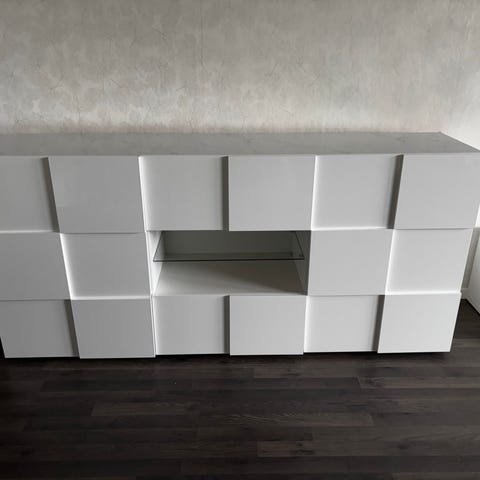 Skänken är tillverkat av trä och har en enkel och klassisk design. Färgen är mjukt vit oh passar till nästan allt.